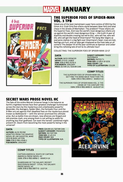 Here’s the catalog page for the Secret Wars prose novel I just finished up…coming January 20!